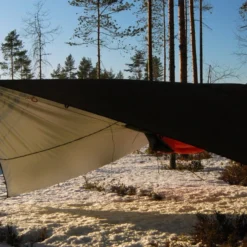 Selve opbevaringsposen fungerer i øvrigt perfekt som en ekstra lomme til fx drikkevarer eller andre småting, man nemt og bekvemt skal kunne komme til. Den kan klipses fast både i kanten af din hængekøje, i en gearslynge eller fx ophænges i din ridgeline over hængekøjen.