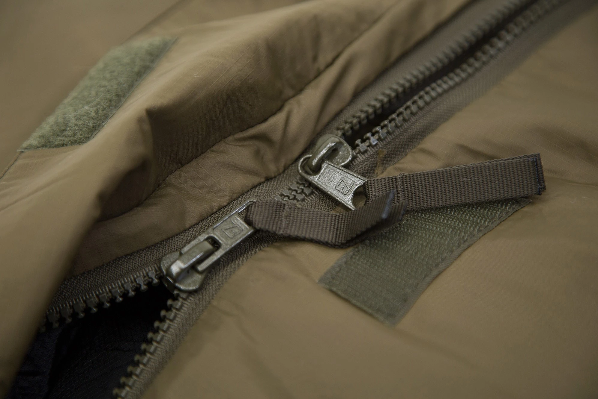 Carinthia Defence 1 Top Large er selvfølgelig differentialskåret mellem yder- og inderpose, og kroppens strålevarme holdes effektivt tilbage af det varmereflekterende indermateriale. Det løsthængende Shelltex® Nylon på yderposen ligger som et ekstra lag henover den indvendige struktur og giver et ekstra lag isolering uden sømme, hvor kulden kan finde igennem, og denne konstruktion sikrer således varme på de kølige og tågede nætter. Og i varmere vejr kan den nederste del af den tovejs centerlynlås åbnes op for ventilation. Det fiberfyldte panel indvendigt og den udvendige stormflap forhindrer unødig kuldegennemtrængning ved lynlåsen, hvor den særlige kantforstærkning effektivt modvirker, at lynlåsen bider sig fast.