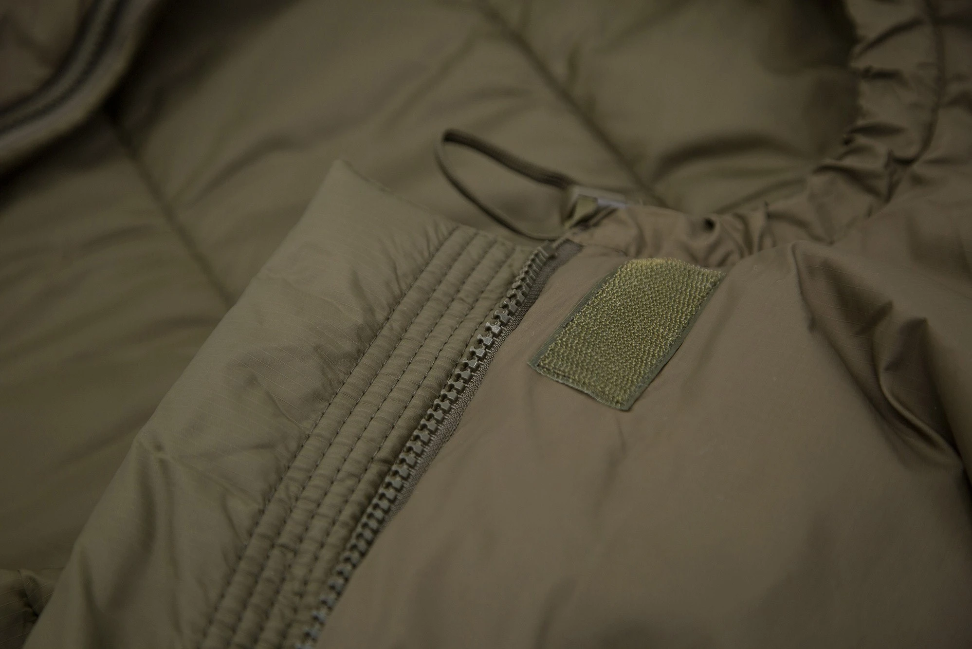 Carinthia Defence 4 Large er selvfølgelig differentialskåret mellem yder- og inderpose, og kroppens strålevarme holdes effektivt tilbage af det varmereflekterende indermateriale. Det løsthængende Shelltex® Nylon på yderposen ligger som et ekstra lag henover den indvendige struktur og giver et ekstra lag isolering uden sømme, hvor kulden kan finde igennem, og denne konstruktion sikrer således varme på de koldeste efterårsnætter. Og i varmere vejr kan den nederste del af den tovejs centerlynlås åbnes op for ventilation. Det ekstra brede, fiberfyldte panel indvendigt og den udvendige stormflap forhindrer unødig kuldegennemtrængning ved lynlåsen, hvor den særlige kantforstærkning effektivt modvirker, at lynlåsen bider sig fast.