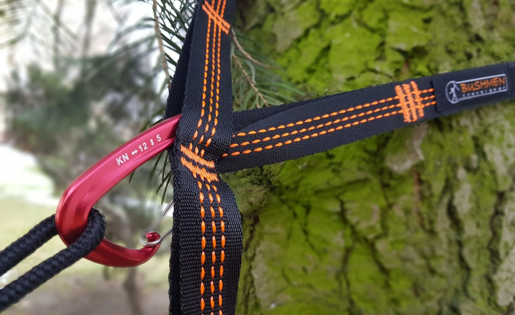 Dette ophængningssystem, som er utroligt nemt at bruge og som skåner barken på træerne, når hængekøjen skal hænges op, består af to stk. ultralette karabiner og to stk. webbing-remme på hver 3 meter, hvor hver af dem er udstyret med seks fastgørelsesløkker. Den ene ende er forsynet med fem løkker og så en enkelt løkke i den anden.