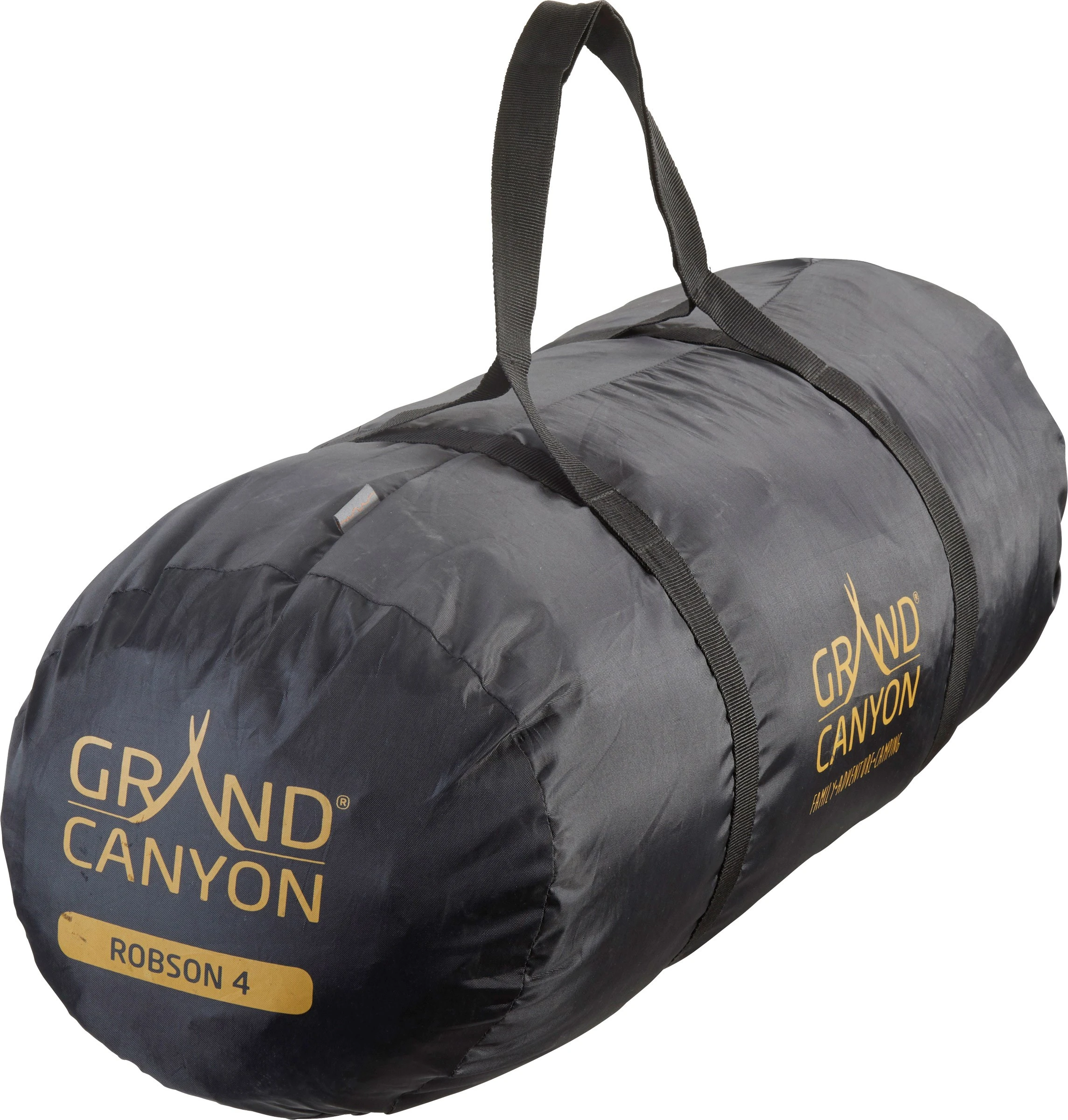 Dette Robson 4 Tent fra Grand Canyon er således velegnet til mange former for friluftsliv som sommercamping eller cykel- og kanoture. Konstruktionen er helt klassisk for tunneltelt til fire personer, dvs. to parallelle teltbuer ved inderteltet og en ekstra bue til den store apsis. Bag den store indgangsdør i siden eller i fronten af apsis findes nemlig et ganske rummeligt areal til rygsække, støvler og til forsigtig madlavning i dårligt vejr. Disse åbninger giver – sammen med ventilationsåbningerne i oversejlet – samtidig mulighed for masser af ventilation i teltet, så kondensdannelsen minimeres.