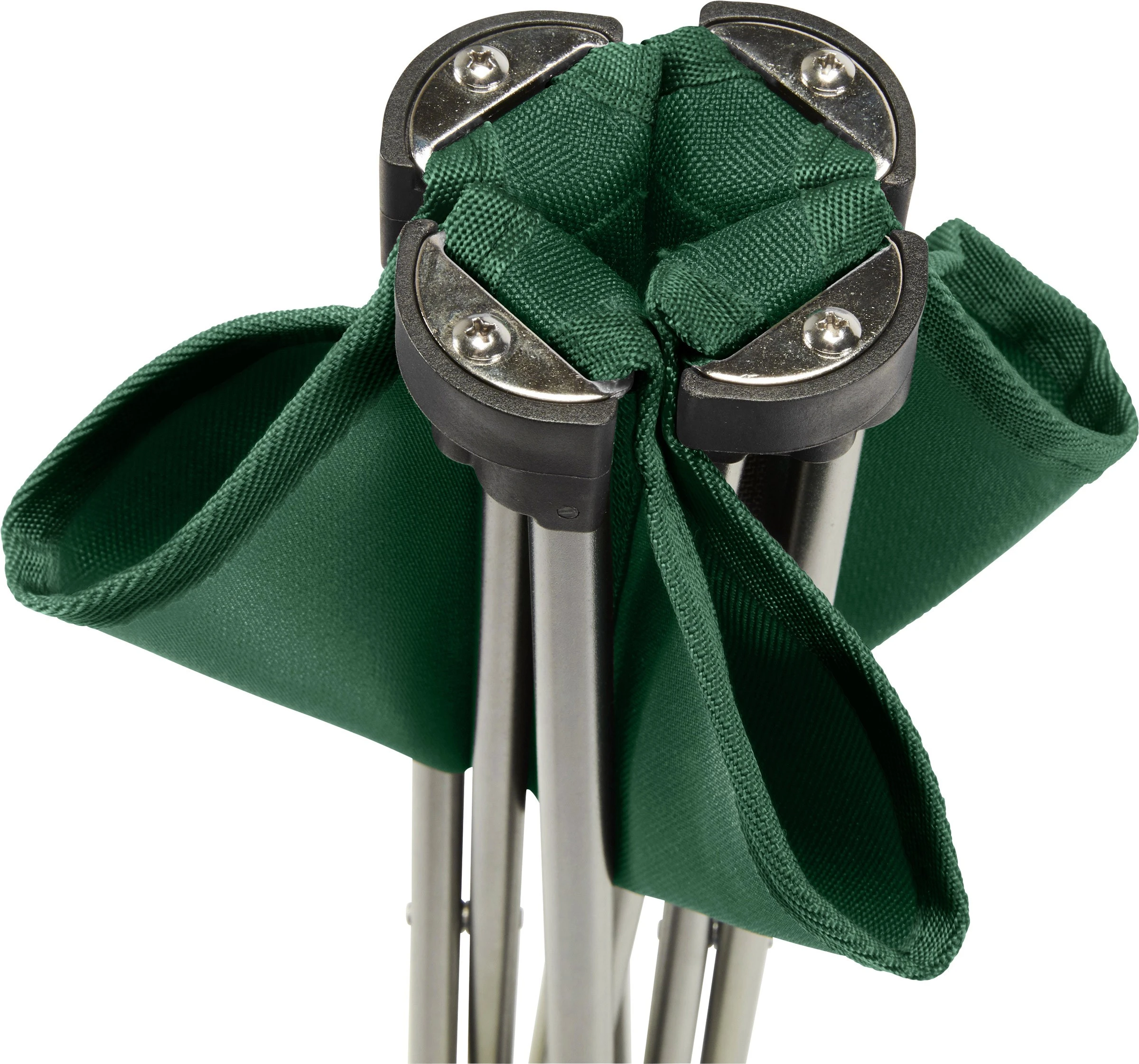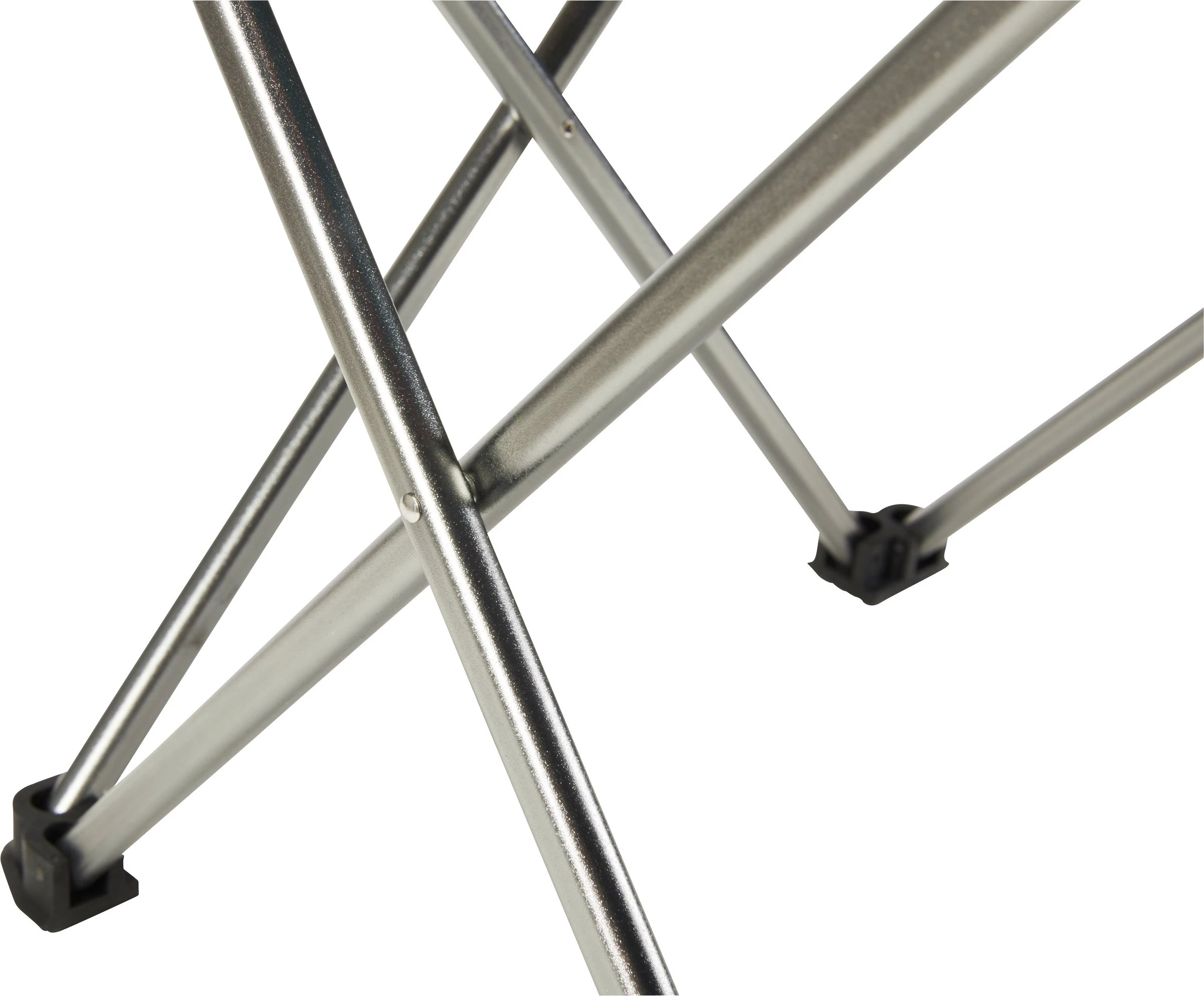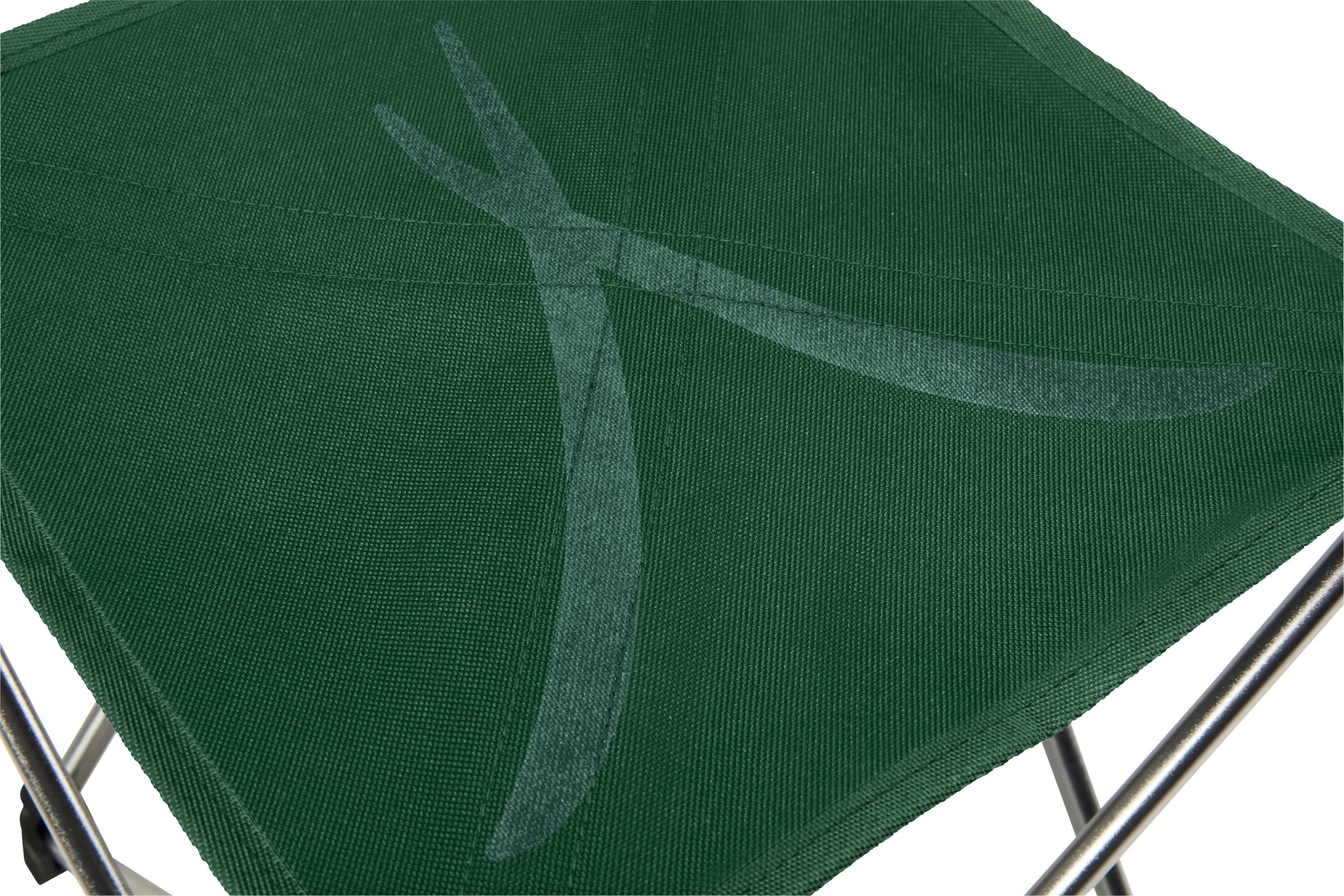 Siddehøjden er 32 cm. og det komfortable sæde er fremstillet af slidstærkt Oxford Polyester, medens de robuste foldeben er af anodiseret aluminium. De fire ben står sikkert og stabilt på stort set alle typer underlag og den tåler en belastning op til 100 kg.