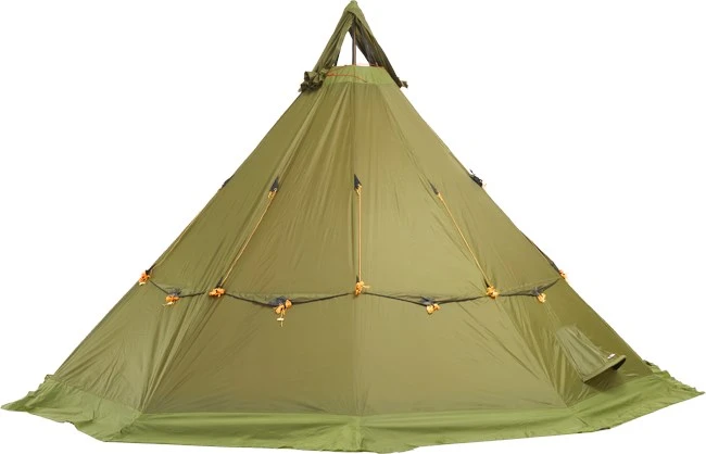 Det unikke ved oversejlet i en Helsport-lavvu er, at det er fremstillet med en speciel flammehæmmende behandling, der altså gør, at man kan have bål i midten af lavvu’en, uden at skulle bekymre sig om vildtfarende gløder fra bålet. Den nederste del af oversejlet på Finnmark 6-8 er forsynet med ekstra stærke stenkanter i det ekstra kraftige Rainguard® TR Ripstop PU, der ligeledes er et flammehæmmende materiale.