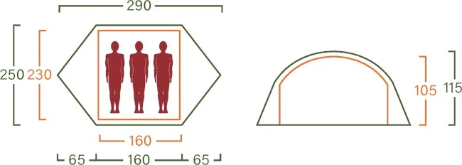 Med både to indgange til det rummelige indertelt og to apsis er det fleksibelt og meget komfortabelt for tre personer på tur. Det er ideelt at bruge den ene apsis til bagage og den anden til madlavning i dårligt vejr, og alternativt kan man vælge at have hver sin separate apsis med egen udgang, så man ikke nødvendigvis skal kravle henover teltmakkeren, når man i løbet af natten skal ud og forrette sin nødtørft. Med de to teltåbninger placeret diagonalt, vil der altid være en åbning i ly for vinden.