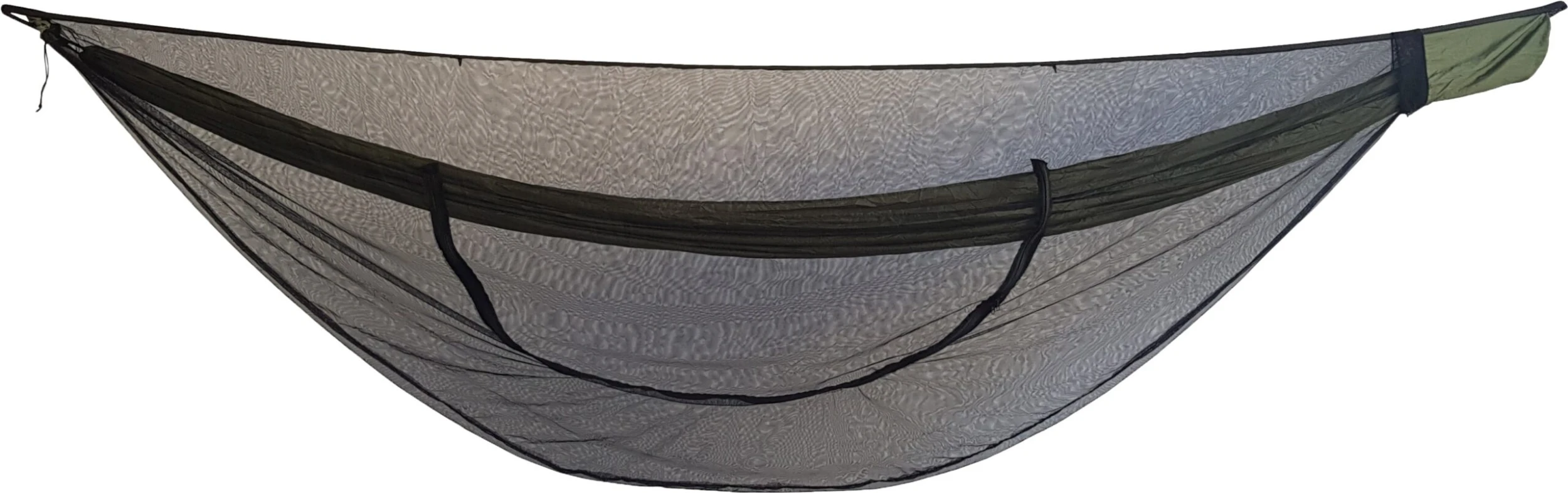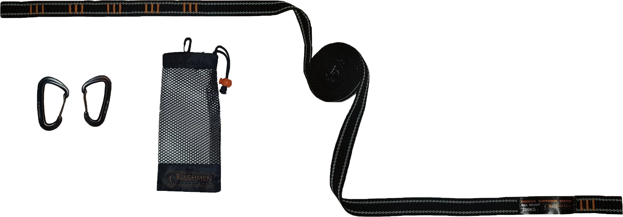 Jungle Hammock Set fra Bushmen er en meget behagelig og ganske let hængekøje med integreret myggenet, som med sin finhed på 196 huller/cm2 giver fuld beskyttelse mod myg, flåter, fluer, myrer og andet irriterende kryb, der kan forstyrre din rolige stund i hængekøjen.