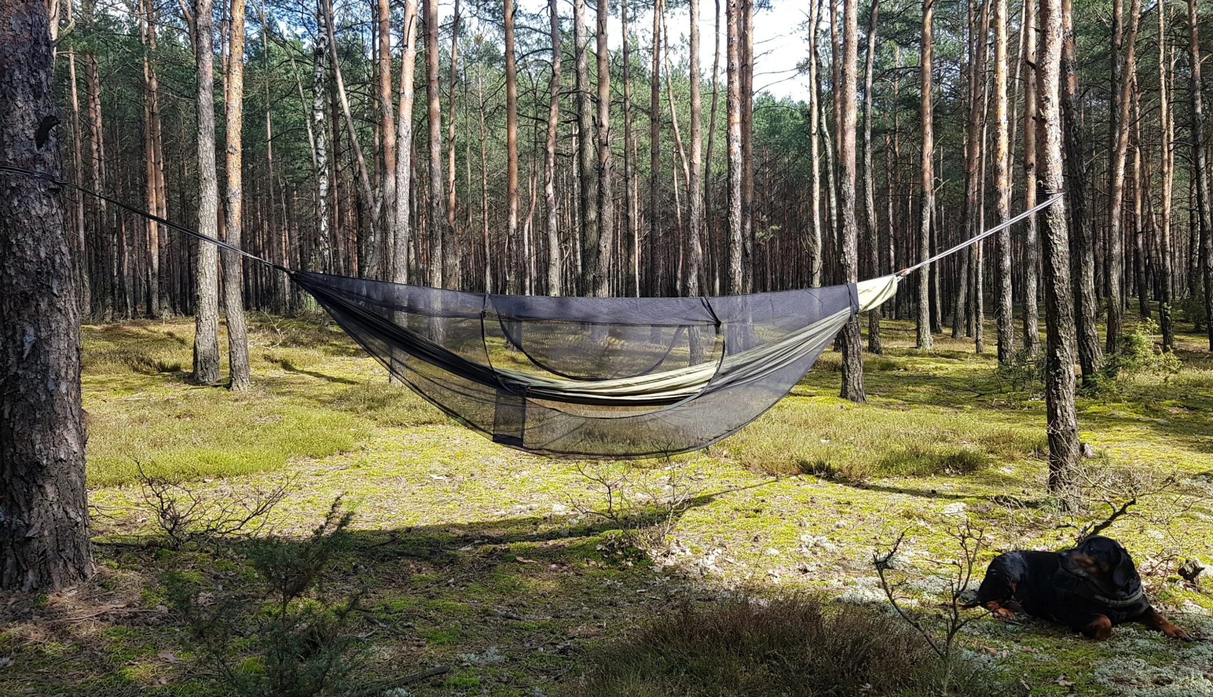 Efterfølgende opspænding efter behov gøres mulig ved hjælp af opspændingsløkkerne, men i de fleste tilfælde er det tilstrækkeligt blot at fastgøre myggenettets endeløkker i hængekøjens karabiner. Afstanden mellem træerne skal typisk være mellem 3,3 og 6 meter, dog afhængigt af træerne diameter.