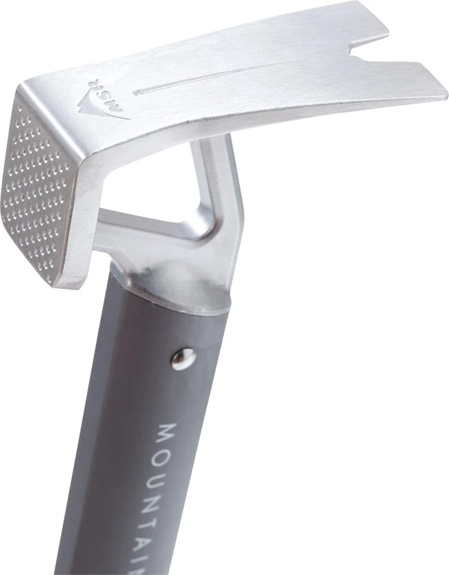 Stake Hammer vejer blot 312 gram, har en totallængde på 28 cm. og er fremstillet med hoved af rustfrit og hærdet stål, som giver et godt og afbalanceret svung med hammeren. Skaftet er af let og stærkt, anodiseret aluminium, og for enden af skaftet er der fastgjort et lille stykke rebsnor, så hammeren kan fastgøres fx på rygsækken, så den ikke tabes.