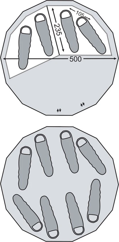 Alfheim 19.6 Zip-In Floor går lidt op ad siden på yderteltet, så man ikke får vand ind i kabinen, når teltet skal anvendes på våde underlag.