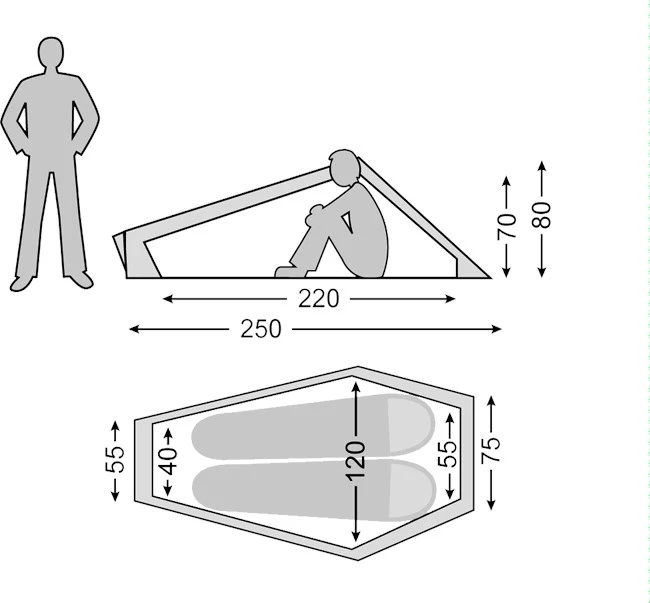 Et udsøgt materialevalg og en række geniale designløsninger har således gjort det muligt at nå dette næsten umulige mål, som samtidig sætter helt nye standarder for markedets letteste telte. Inderteltet er 220 cm. langt og op til 120 cm. bredt og højden er 70 cm, så der er rent faktisk ganske fornuftig plads i inderteltet, når man tager den ekstremt lave vægt i betragtning. Apsis er der så ikke så meget af, så rygsækkene må placeres under et regnslag udenfor teltet, men inderteltet kan klipses af, hvis man fx skal koge en kop kaffe i ly for regn og vind. Her anbefales det, at man benytter den medfølgende tarpstang og løfter døren op, hvilket øger det overdækkede areal betragteligt.