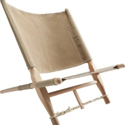 Moesgaard Wooden Chair er forbilledligt snedkereret af massiv bøg og med sæde og ryglæn i tætvævet hør og snoretræk af sisal. Stolen kan nemt og hurtigt og helt uden brug af værktøj samles og pakkes sammen igen, så den i den eksklusive pakkepose fylder mindst muligt under transport.