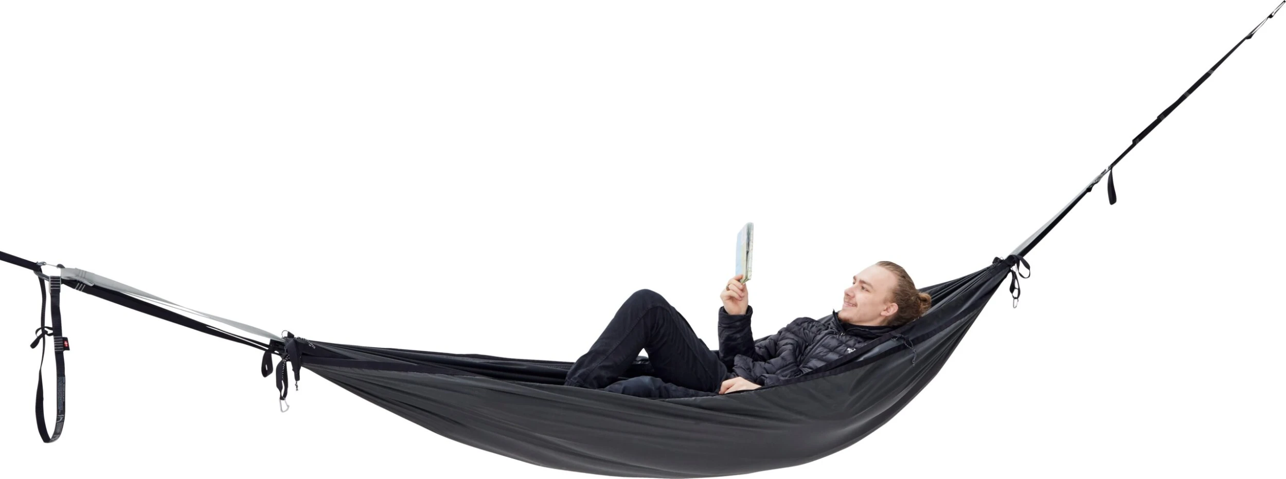 Denne uhyre lette og bomstærke Voss Tech Tarp fra Nordisk er ét af de mest innovative produkter, vi har set i mange år! Det er nemlig en tarp, som både kan bruges som sådan i alle mulige og umulige forskellige afskygninger, som simpelt pyramidetelt, som hængekøje med eller uden tag, som teltunderlag, som båre til transport af tilskadekomne eller det tunge grej eller blot som poncho – anvendelsesmulighederne er i sandhed mange og det er nærmest kun fantasien, der sætter grænser!