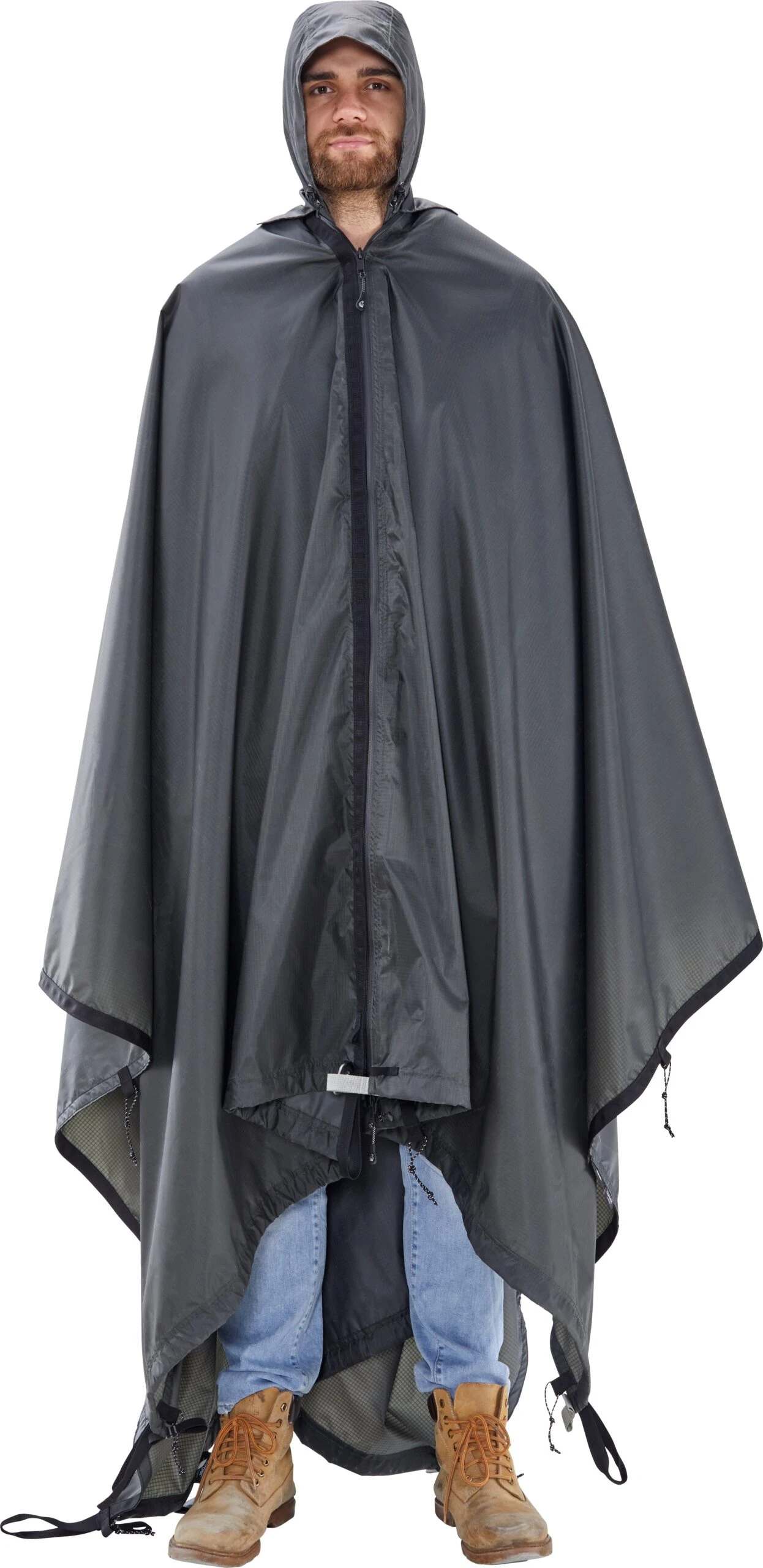 Eller brug Voss Tech Tarp som poncho med hætte, hvor den er stor nok til at kunne dække både dig og din rygsæk. Brug her den tovejs lynlås og træk ponchoen henover hovedet og eventuel rygsæk. Eller brug den som båre til den tilskadekomne eller det tunge grej, hvor så de 6 forstærkede bæregreb langs tarpens kant tages i brug.