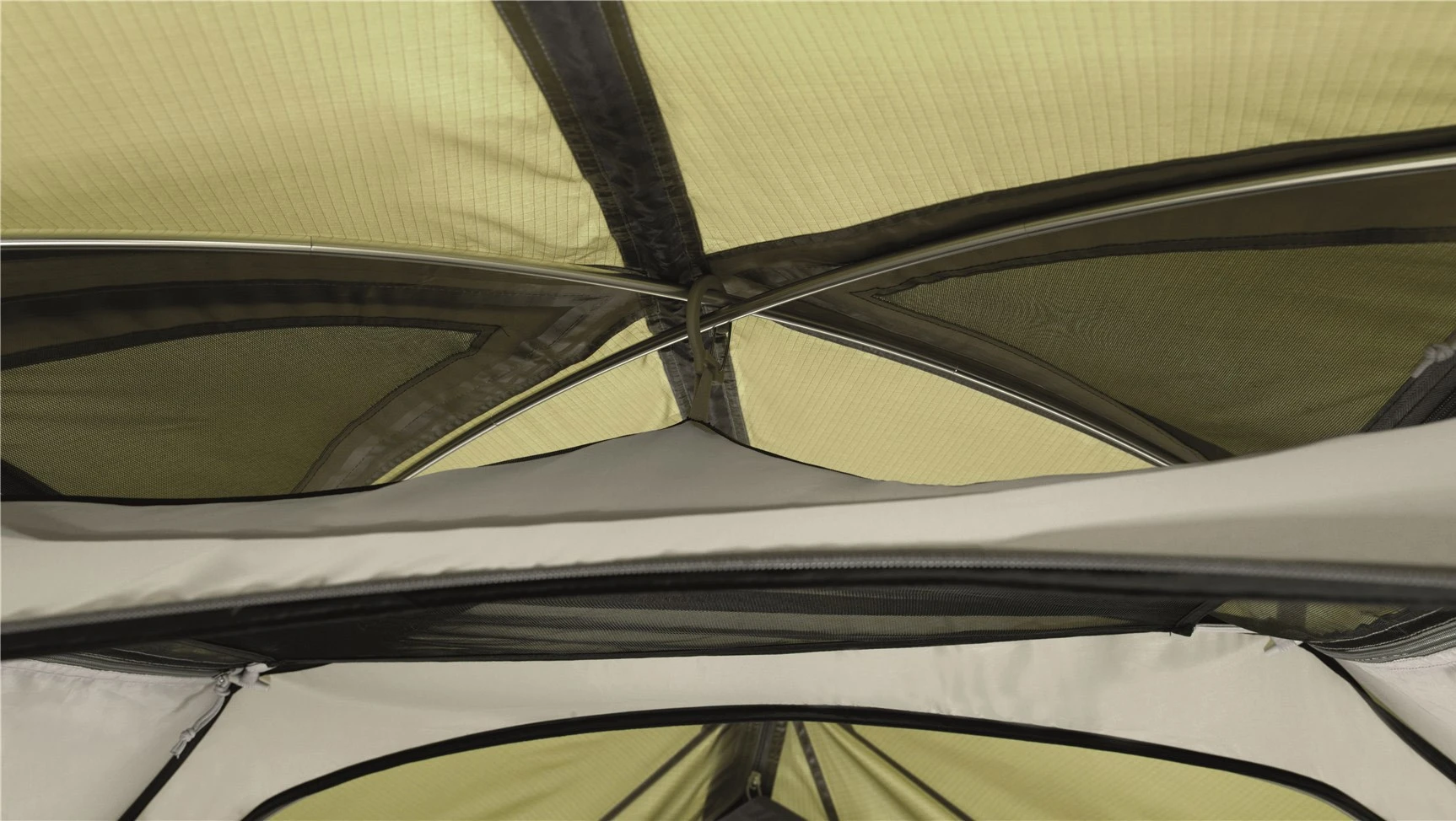 Robens Lodge 2 Tent er lavet med et oversejl af det rivstærke HydroTex™ HD RS i PU-belagt 185T Taffeta Ripstop Polyester, som tåler et vandsøjletryk på hele 5.000 mm. Materialet er mere UV / UVA-resistent end PU-belagt nylon, så det kan med andre ord tåle eksponering af solens stråler i længere tid end et nylonoversejl. Men polyesteroversejlene er en lille smule tungere, da der skal en kraftigere metervare til, for at opnå en tilstrækkelig høj rivstyrke. Alle spidsbelastningspunkterne såsom bardun- og de justerbare pløkfæste er ekstra forstærket med superstærkt Cordura®. Alle sømme i oversejlet er varmlufttapede, og de velplacerede ventilskakter i oversejlet – både i top og bund – sørger for at opretholde det rette klima i teltet. De lynlåslukkede ventiler kan åbnes og lukkes efter behov – også indefra – og er naturligvis udstyret med myggenet, så krybene ikke finder ind. Og så kan alle barduner på oversejlet fikst bundtes op og samles i de til formålet fastgjorte løkker, så man dels slipper for kludder i alle bardunerne, når teltet pakkes ud, og dels undgår de flagrende barduner, hvis ikke alle lige er i brug – endnu en virkelig gennemtænkt detalje!