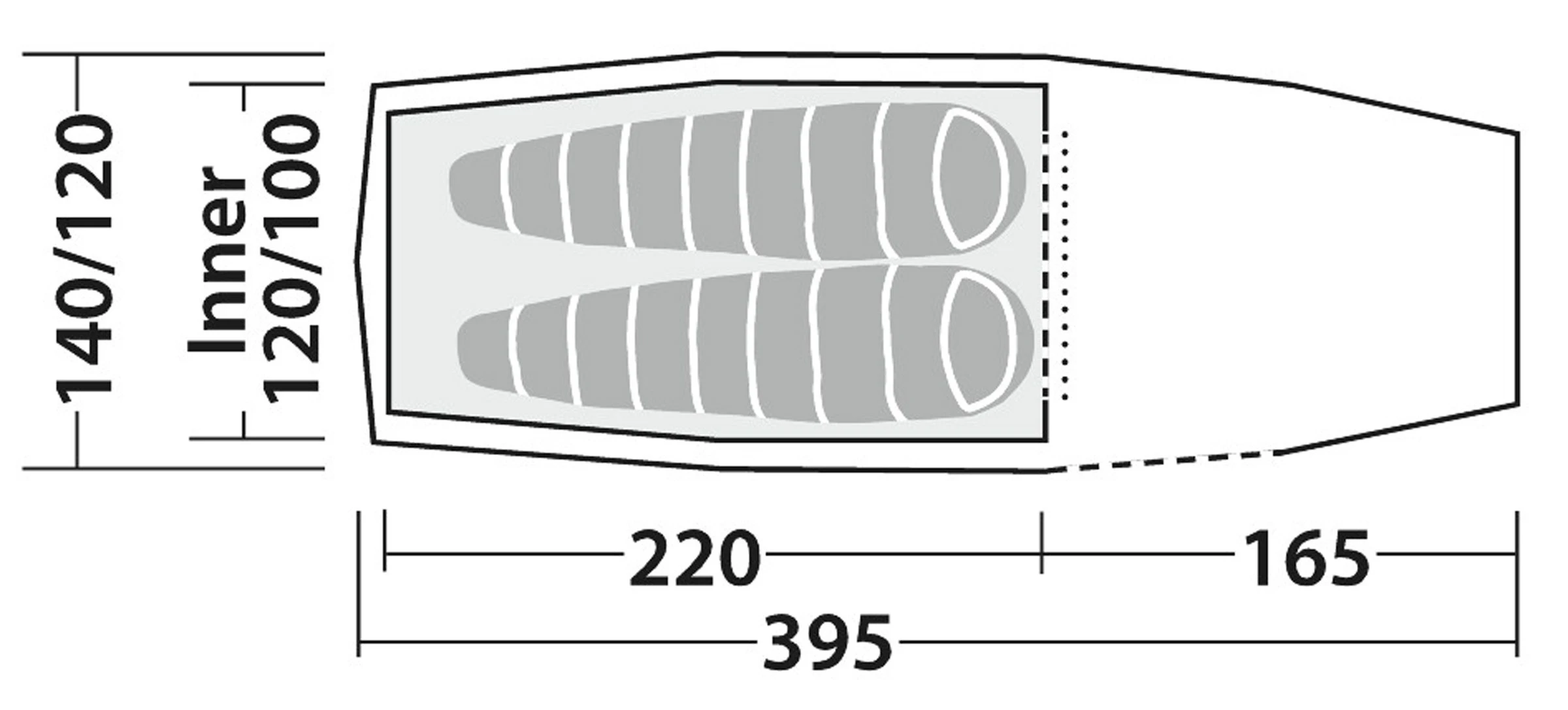 Væggene i inderteltet er af imprægneret og åndbart 68 denier polyester med mesh-paneler ved ventilationsåbningerne og den robuste bund er af en slidstærk 75 denier Taffeta Polyester, som modstår et statisk vandsøjletryk på minimum 6.000 mm. Inderteltet er udstyret med de rigtige lommer til de personlige ejendele. Døren til inderteltet er lavet med et stort myggenetspanel, som kan dækkes til med et lynlåslukket panel, hvis teltet skal bruges, når det er køligt eller ventilationen skal reguleres.