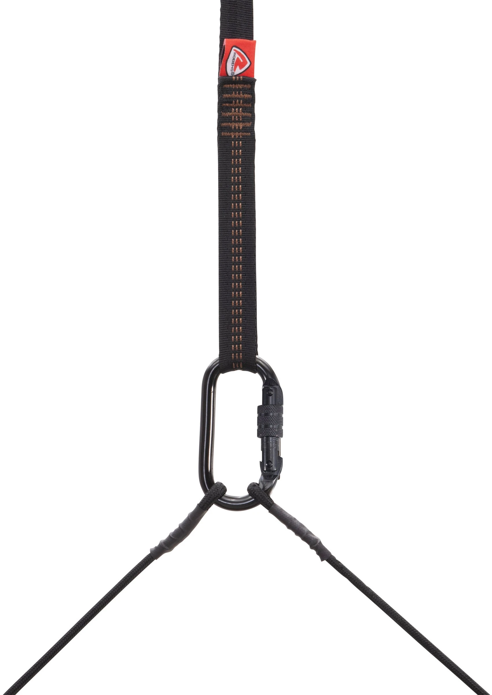 Trace Hammock Chair leveres i praktisk transportpose, som foruden køjestolen indeholder karabin og daisy chains til opsætning og regulering af højden.