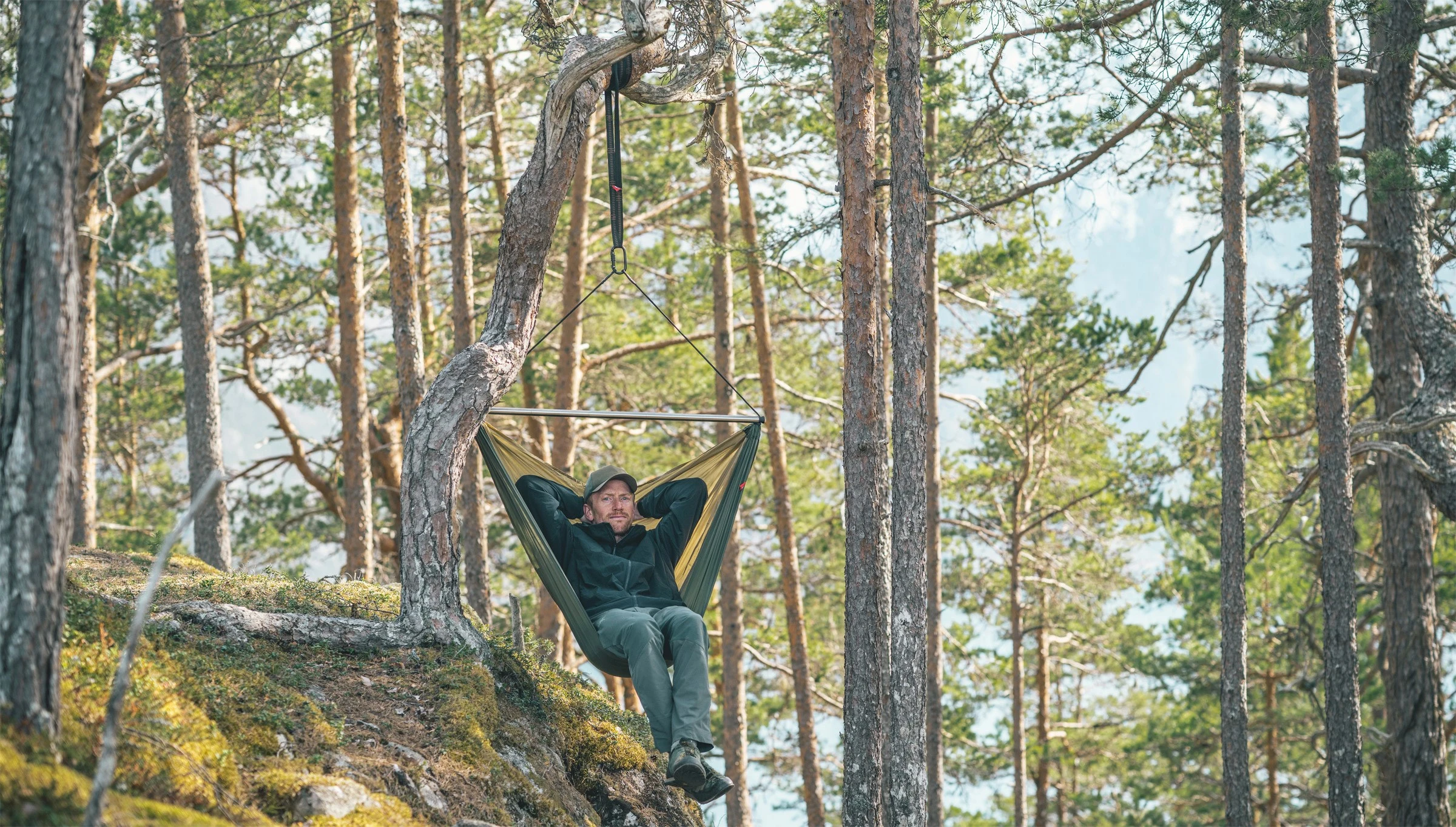 Med en vægt lige godt 1 kilo og en pakkevolumen på blot 30 x 11 x 11 cm. er denne Trace Hammock Chair fra danske Robens ganske oplagt at have i dagtursrygsækken i skoven, når du i løbet af få sekunder vil kunne tage et velfortjent hvil i en afslappende hængekøjestol.