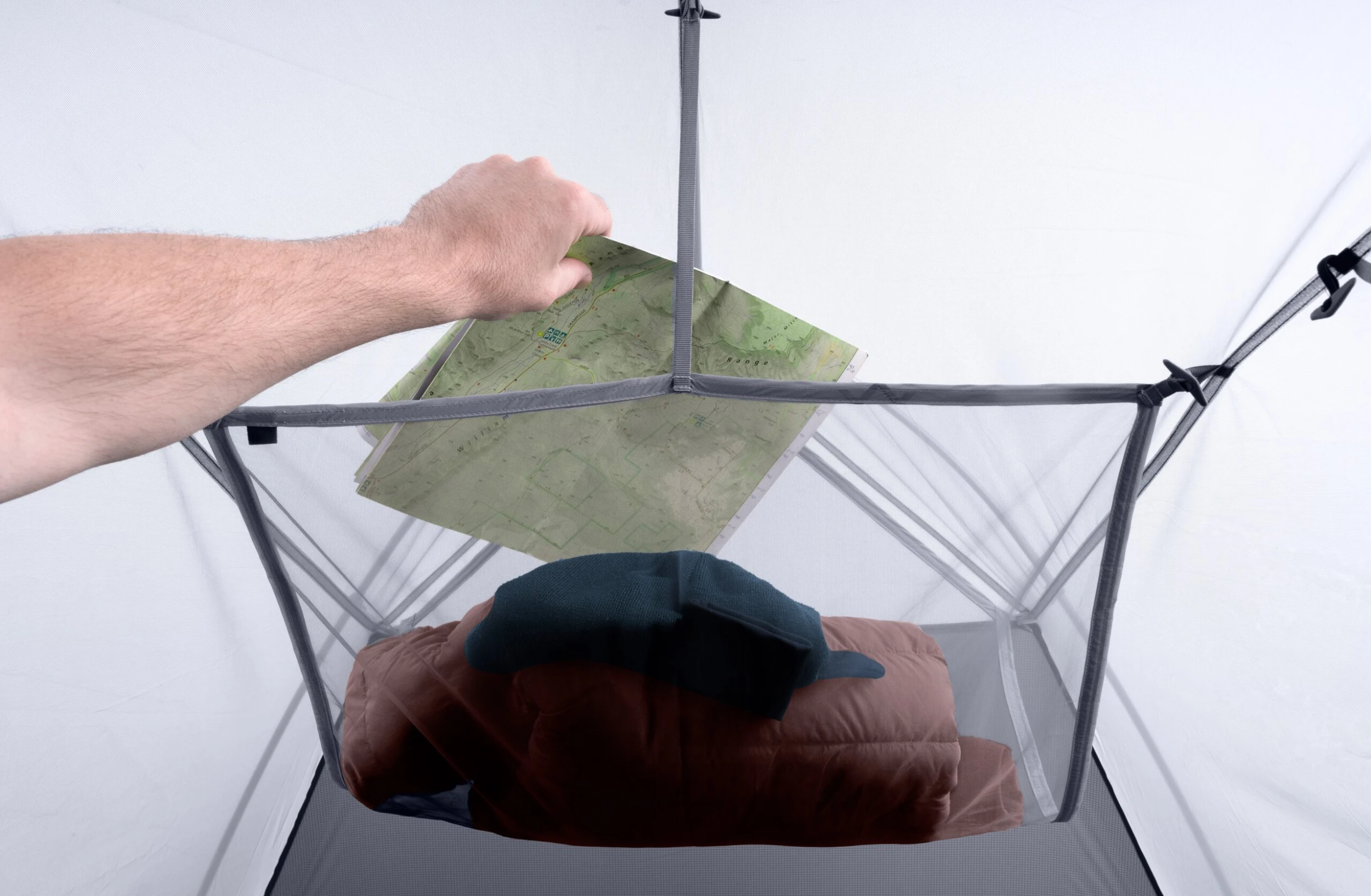 Gear loft’et fastgøres nemt og hurtigt ved hjælp af de smarte quick-connect V-Toggles og udnytter hermed pladsen i højden af teltet til praktisk opbevaring og som aflægningsplads til det tøj, du tager af, når du kryber i soveposen.