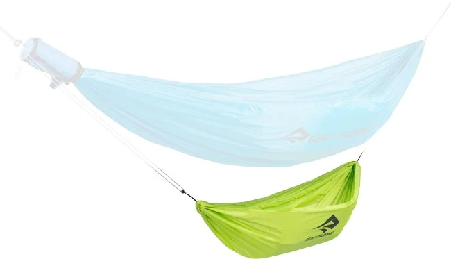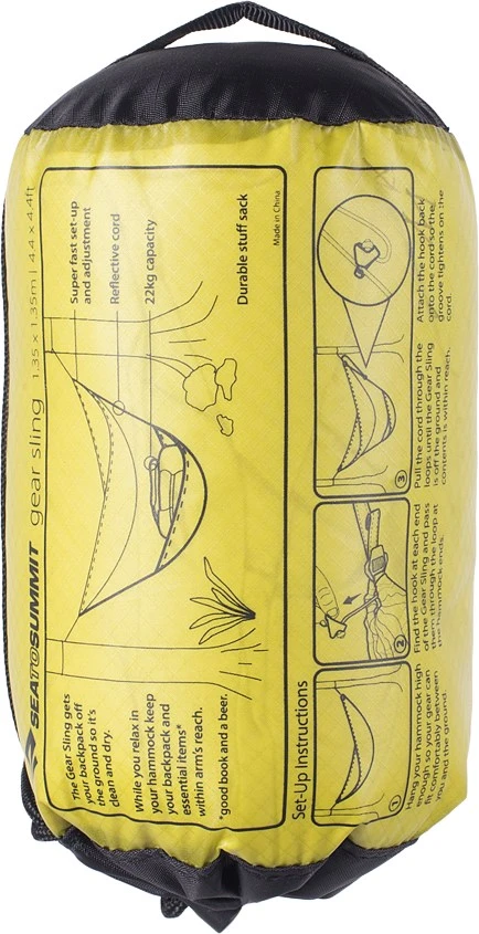 Sea to Summit Hammock Gear Sling måler udfoldet 1,4 x 1,4 meter og er superhurtig at sætte op, og højden på posen kan reguleres med bardunspænderne på de reflekterende monteringsliner.