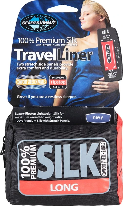 De skyldes, at Sea to Summit udelukkende anvender Grade AA-silke – altså den bedst tilgængelige silke – vævet i en let og slidstærk ripstopstruktur og udelukkende syet med dobbelt kapsøm med forstærket tråd. De langsgående paneler i hver side af posen af blødt og strækbart polyester/Lycra® øger i den grad komforten og bevægelsesfriheden, hvilket bidrager til en god nats søvn.