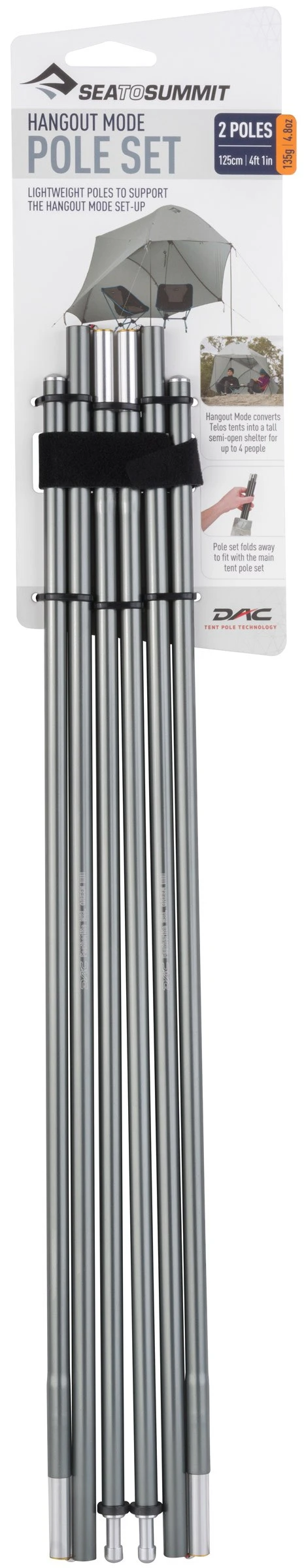 Disse lette og stærke DAC Featherlite® NFL™ -stænger er udviklet til at gøre opsætningen af den såkaldte hangout-tilstand nem og hurtig. Fastgør teltstængerne i oversejlet, montér Telos Hangout Pole Set i den ene ende af teltet, pløk fast og vupti – nu har du det perfekte halvåbne sted at hænge ud, når pausen skal tages eller udsigten skal nydes i ly for regn og sol.