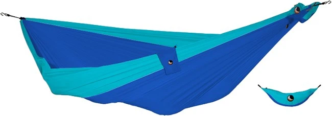Denne ekstra store King Size Hammock er, som navnet antyder, en ekstra rummelig hængekøje med plads til to personer, hvis man har lyst. Den er fremstillet af et let og dynamisk faldskærmsstof, som er drønstærkt og som former sig perfekt efter kroppen – og som fylder meget lidt sammenpakket. Materialet er mugresistent og kan maskinvaskes ved 30°C.