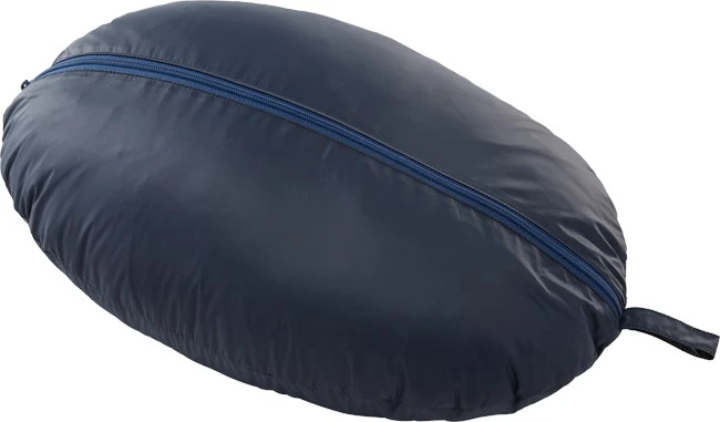 Det gør, at inderposen, når den vrangvendes og pakkes væk i egen lomme, blot fylder – uden overhovedet at være mast helt sammen – 32 x 22 cm, så den også kan fungere som hovedpude, når den ikke lige bruges indeni soveposen.