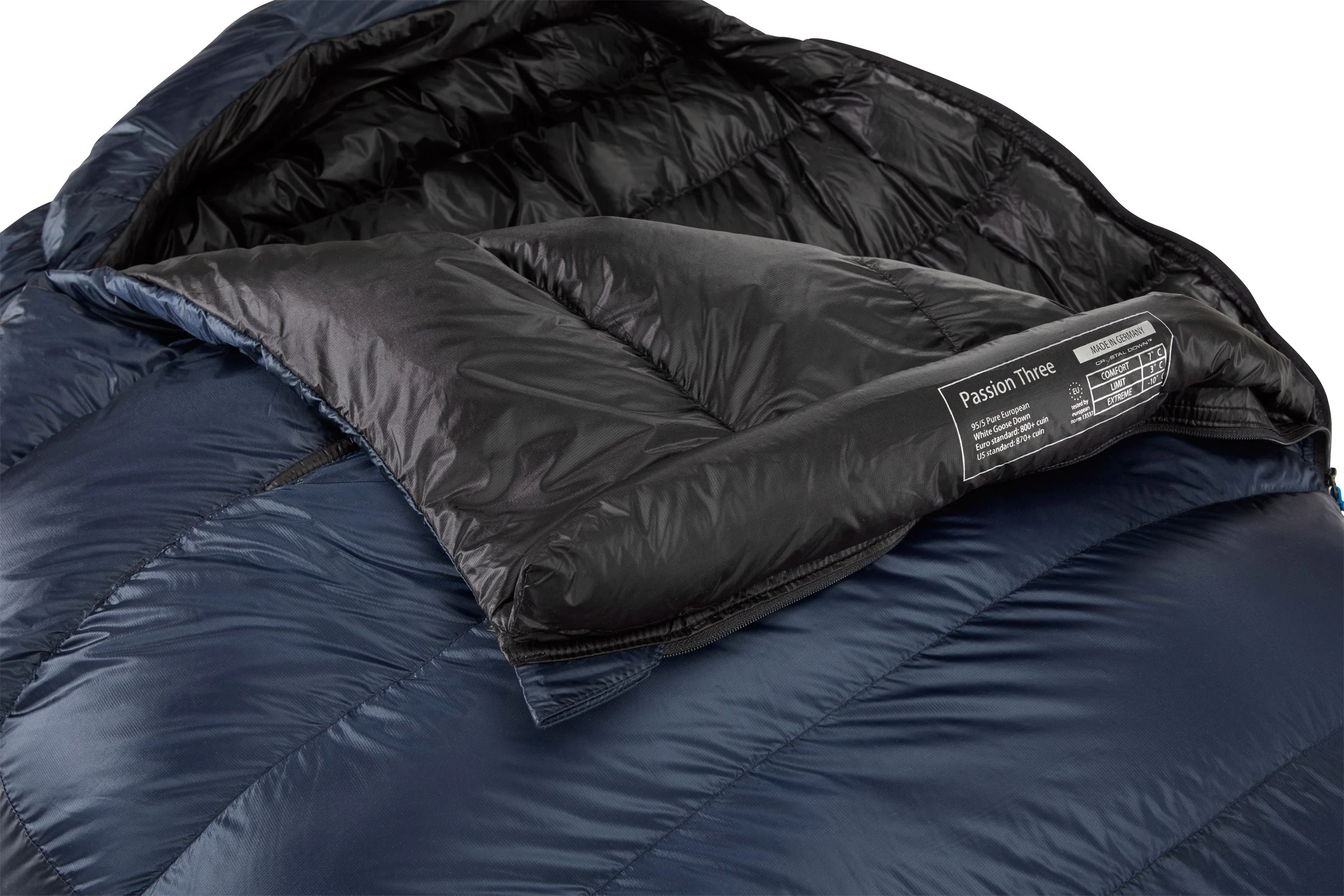 Passion Three Large har vundet adskillige priser, bl.a. den eftertragtede Outdoor Industry Award, en Red Dot Design Award og en hæder i det velansete friluftsmagasin, Outdoor, og her er i sandhed også tale om en sovepose langt ud over det sædvanlige! Med sine ca. 530 gram (hvoraf de 290 gram som nævnt er dun) er dette markedets letteste dunsovepose sammenholdt med temperaturgrænsen – uanset, hvad andre producenter hævder.
