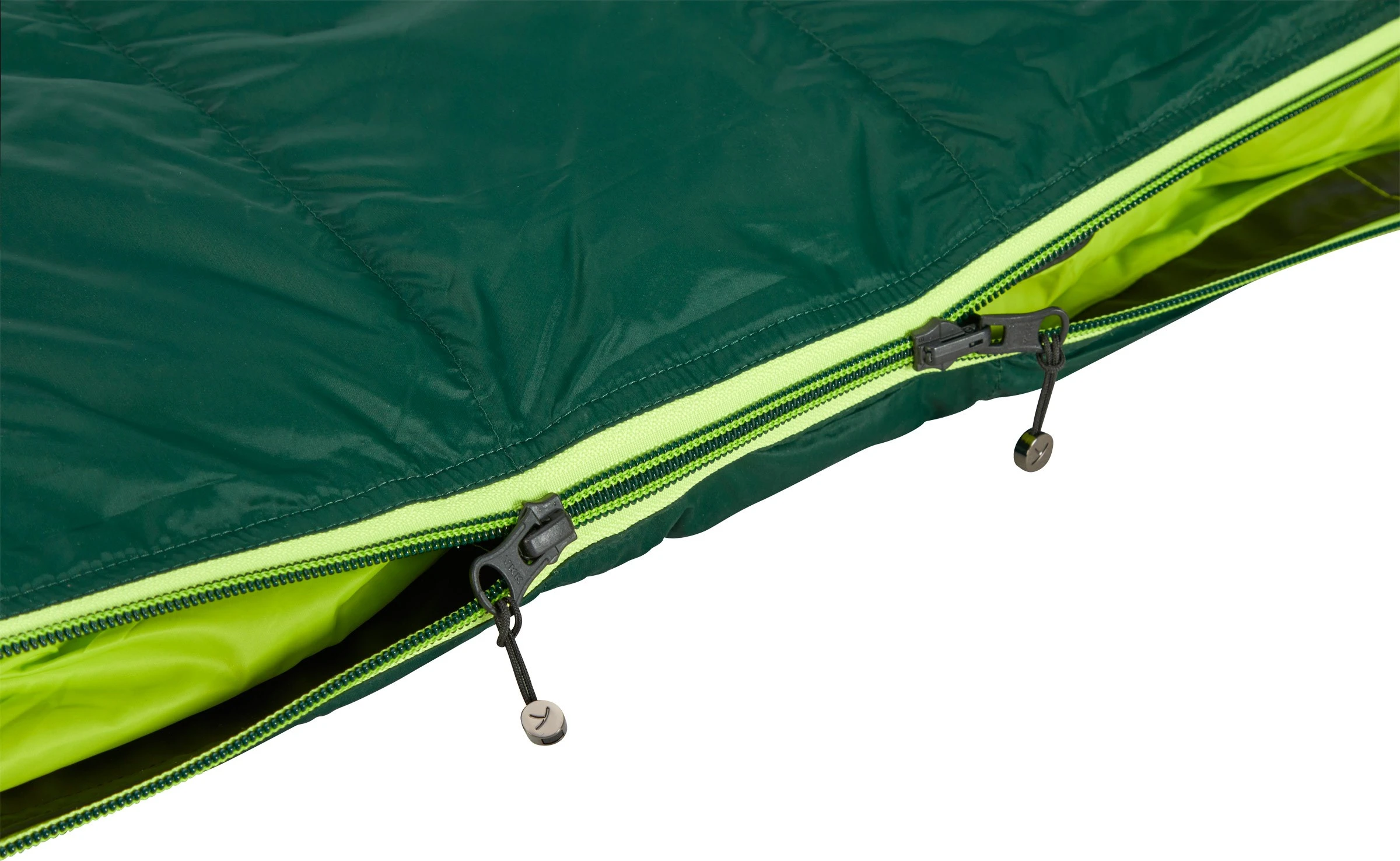 Y by Nordisk Tension Brick 400 X-Large er selvfølgelig udstyret med dunfyldt stormflap bag den lange lynlås (som er tovejs for at kunne ventilere nedefra) for at minimere varmetabet. Endvidere er posen forsynet med regulerbar hætte, som kan fastgøres på begge sider af posen, afhængigt af, om man vil have lynlåsen i højre eller i venstre side. Indvendig findes en fiks lomme til fx vækkeur eller værdierne. Og så leveres Tension Brick 400 X-Large både med pakkepose og med en stor opbevaringspose, hvori soveposen kan ligge tilpas luftigt mellem turene i det fri – det har den nemlig bedst af!